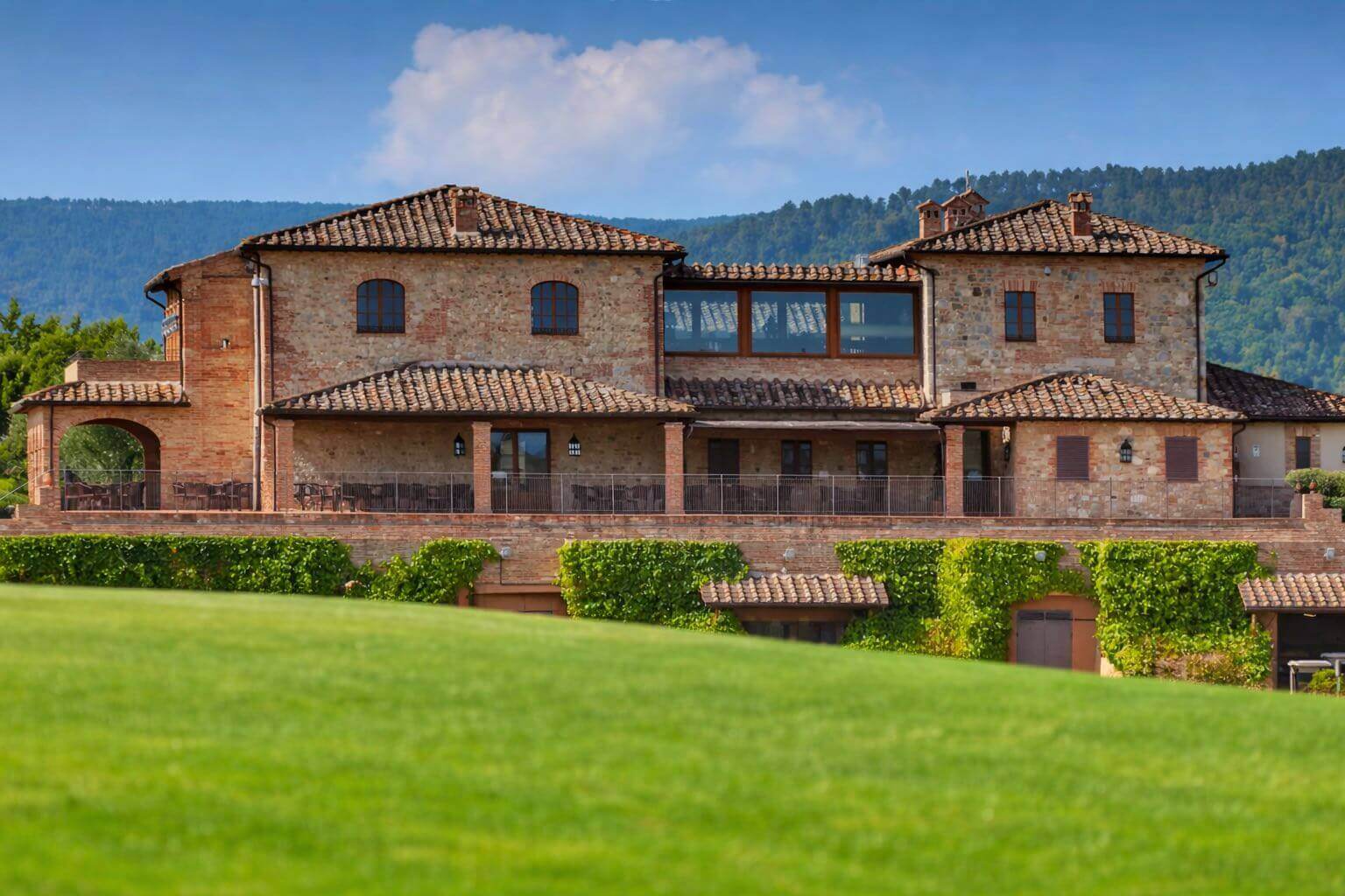 Scopri il vero sapore della Toscana alla Clubhouse del Royal Golf La Bagnaia. Ti aspettiamo a Il Rosmarino Bar & Restaurant per un pranzo delizioso o un aperitivo al tramonto sulla nostra elegante terrazza sotto i portici. Potrai gustare un menù ricco di ingredienti locali e ricette tradizionali, accompagnato da una vista mozzafiato sul nostro campo da golf e sulle dolci colline senesi.